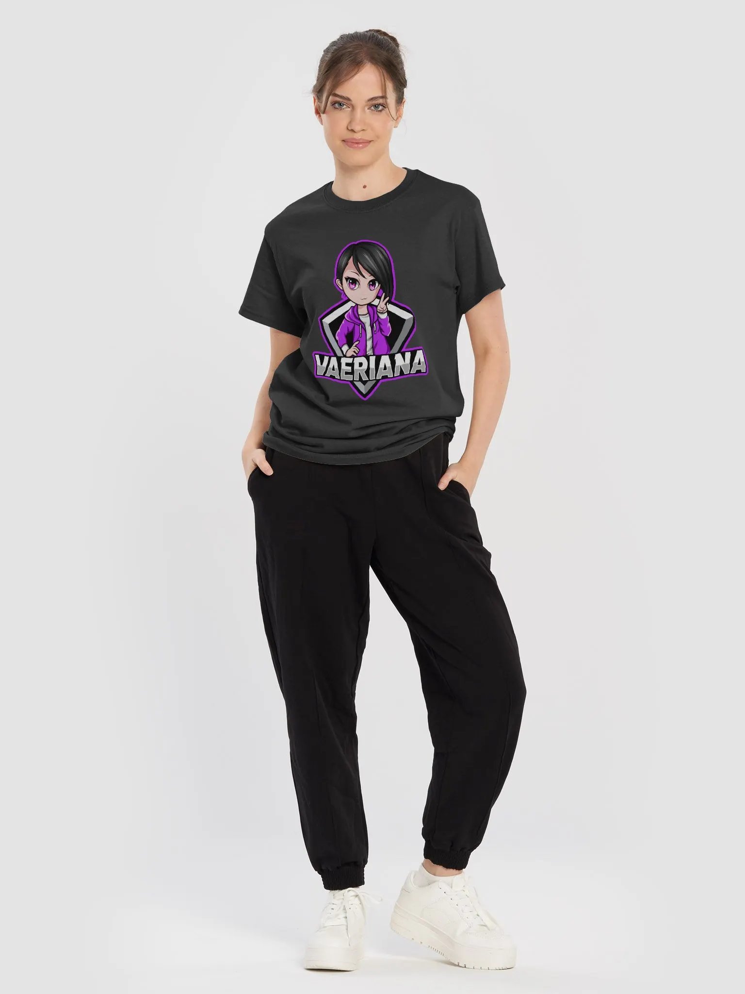 Elevate your streetwear style with the anime-inspired Peace Sign Vaeriana T-shirt. Perfect for gaming or streaming enthusiasts. 100% cotton with a relaxed fit for ultimate comfort
